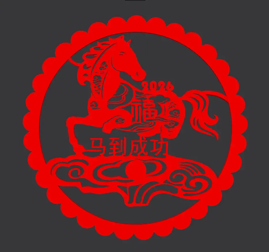 2026新年马到成功剪纸冰箱贴